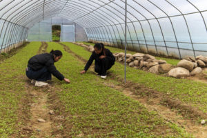 2026年1月28日,在广西壮族自治区贺州市富川瑶族自治县立新农场苗木基地,工人在管护脐橙苗木。