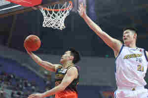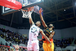 2026年1月29日,在江苏省南通市,新疆伊力特队球员纳托尔在比赛中上篮。