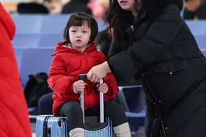 2026年1月29日,小朋友在甘肃省定西市安定区街头玩雪。