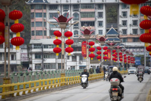 2026年1月29日,市民冒雪骑行在甘肃省定西市安定区街头。