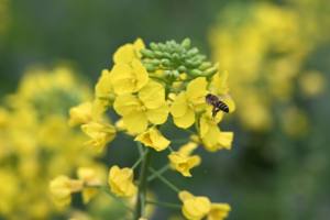2026年1月31日,蜜蜂在广西河池市罗城仫佬族自治县四把镇石门村的花海里采蜜。