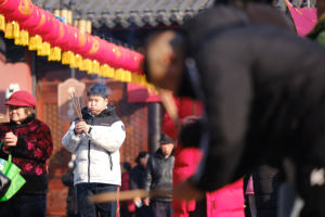 2026年2月1日,在安徽省合肥市城隍庙,市民正在选购新年饰品。春节临近,合肥市城隍庙市场内挂满了大红灯笼、春联、中国结、马年饰品等节日饰品,年味浓厚,吸引不少市民前往选购。