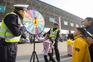 2月2日,四川省达州市通川区,达州市公安局交管支队直属一大队的一名交警在达州市汽车客运西站向旅客开展春运交通安全宣传。当天,公安交管部门开展了“平安春运 交警同行”主题宣传动。
