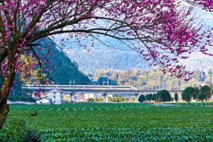 2月2日,四川省达州市通川区河市镇,一列动车组列车经过襄渝线和襄渝二线黄家坝“铁路立交桥”。