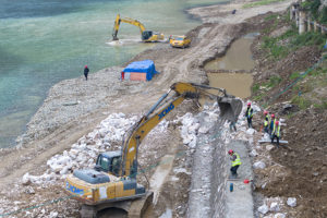 连日来,在甘肃省张掖市盘道山抽水蓄能电站建设项目现场,中国三峡建工的建设者们冒着严寒紧张有序的进行下库大坝填筑、地下发电厂房系统锚索支护、作业通道焊接、上库斜井的钻挖、进厂交通洞内道路硬化等工程项目施工,建设现场机器轰鸣、焊花飞溅、运输车辆往来穿梭,挖掘机、装载机等大型机械开足马力作业,建设者们抢工期、赶进度,全力推进项目早日投产。