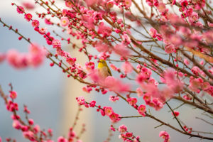 2026年2月1日,重庆市巫山初级中学校园内梅花盛开,红头长尾山雀在艳丽的梅花丛中嬉戏,啁啾,给即将到来的春天增添了活力。