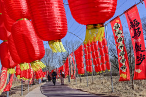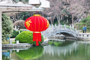 2026年2月5日,在广西壮族自治区贺州市爱莲湖公园,市民在游玩赏花。