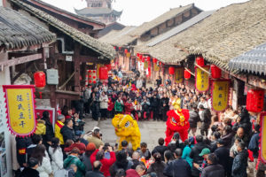 2026年2月8日,北京白塔寺周边被装扮一新,迎春氛围已拉满!图为游人找好角度拍照!