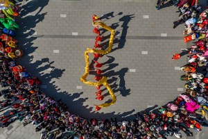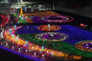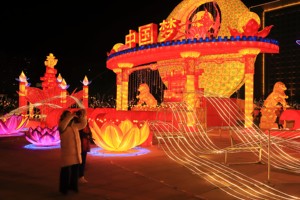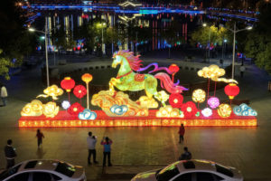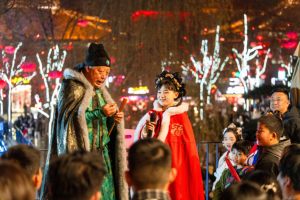 2026年2月10日,市民在甘肃省定西市安定区政府广场赏灯游玩。