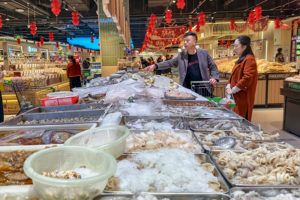 2026年2月13日,市民在湖南省永州市冷水滩区一家超市选购年货。