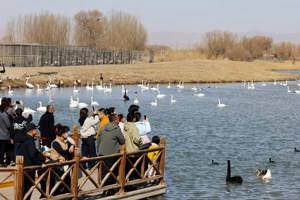 2026年2月18日,在河南省三门峡天鹅湖国家城市湿地公园,众多游客前来观鸟赏景,亲近自然,乐享春节假期。