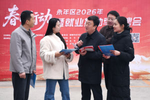 2026年2月21日,在安徽省芜湖市繁昌·北站1969文创街区“春风行动”系列招聘会上,人头攒动,吸引众多求职者前来应聘求职。繁昌区充分利用春节返乡高峰为契机,精心策划、线上、线下举办系列招聘活动,搭建企业与求职者的沟通桥梁,畅通就业渠道,帮助返乡人员和广大居民实现“家门口”就业。