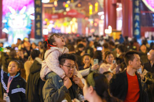 2026年2月21日,在河南省安阳市内黄县公园广场,演员演出传统戏曲豫剧《五世请缨》。