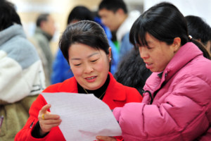 2026年2月24日,求职者在湖北省咸宁市通城县“春风行动”大型招聘会上寻找适合自己的就业岗位。