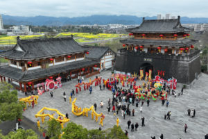 2026年2月27日,全国第二高石塔——重庆梁平文峰塔,在金黄色油菜花映衬下,梁平文峰塔与远山、树木构成一幅春意盎然的画卷。