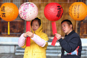 2026年3月1日,市民在贵州省黔东南苗族侗族自治州从江县丙梅街道鼓楼广场猜灯谜。