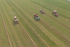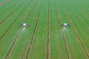 2026年3月2日,国家小麦产业技术体系兰州综合试验站与通渭县科技特派团组织小麦专家,在甘肃省定西市通渭县常河镇南河村指导春耕生产并开展冬小麦春季田间管理技术现场培训。图为,培训现场进行的无人机追肥作业演示。