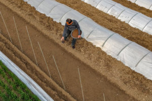 2026年3月11日,在安徽省亳州市谯城区古城镇铁佛村,农民正在采收中药材知母芽,准备销往外地市场(无人机照片)。