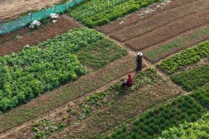 2026年3月11日,云南省红河哈尼族彝族自治州弥勒市太平街道禄丰社区,菜农在田园采摘豌豆,供应春季市场。(无人机照片)