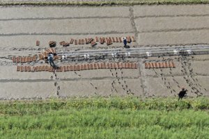 2026年3月12日,浙江省东阳市画水镇恒新农业机械化专业合作社大棚内,十几位农民分工明确,有条不紊地将秧苗一盘盘地搬进大棚内。眼下正是春耕备耕时节,东阳市各地农户紧抓农时不误农事,田野间随处可见农民劳作的场景。据了解,该合作社当天有1万多盘早稻秧苗搬进大棚,将在大棚内培育20天到25天左右,等秧苗“强壮”一些后,将陆续机插入田。该合作社负责人介绍,今年内部其将培育2000多亩的早稻秧苗,外部还将承接其他农户4000多亩早稻秧苗的培育订单。