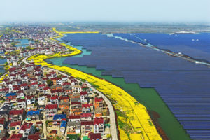 3月12日,在浙江省温岭市石桥头镇东花桥村,当地的女子舞龙爱好者们高举红金相间的“中国龙”,在花海中穿梭起伏。