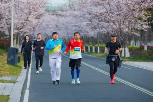 2026年3月30日,游人在河北省邯郸市峰峰矿区义井镇万亩秀林赏樱游玩(无人机照片)。
